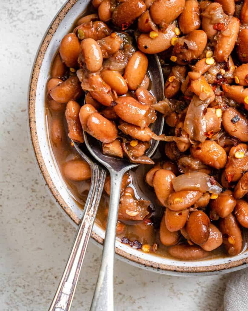 These vegan refried beans are delicious and perfect served in your favorite Mexican or Spanish-inspired dish.