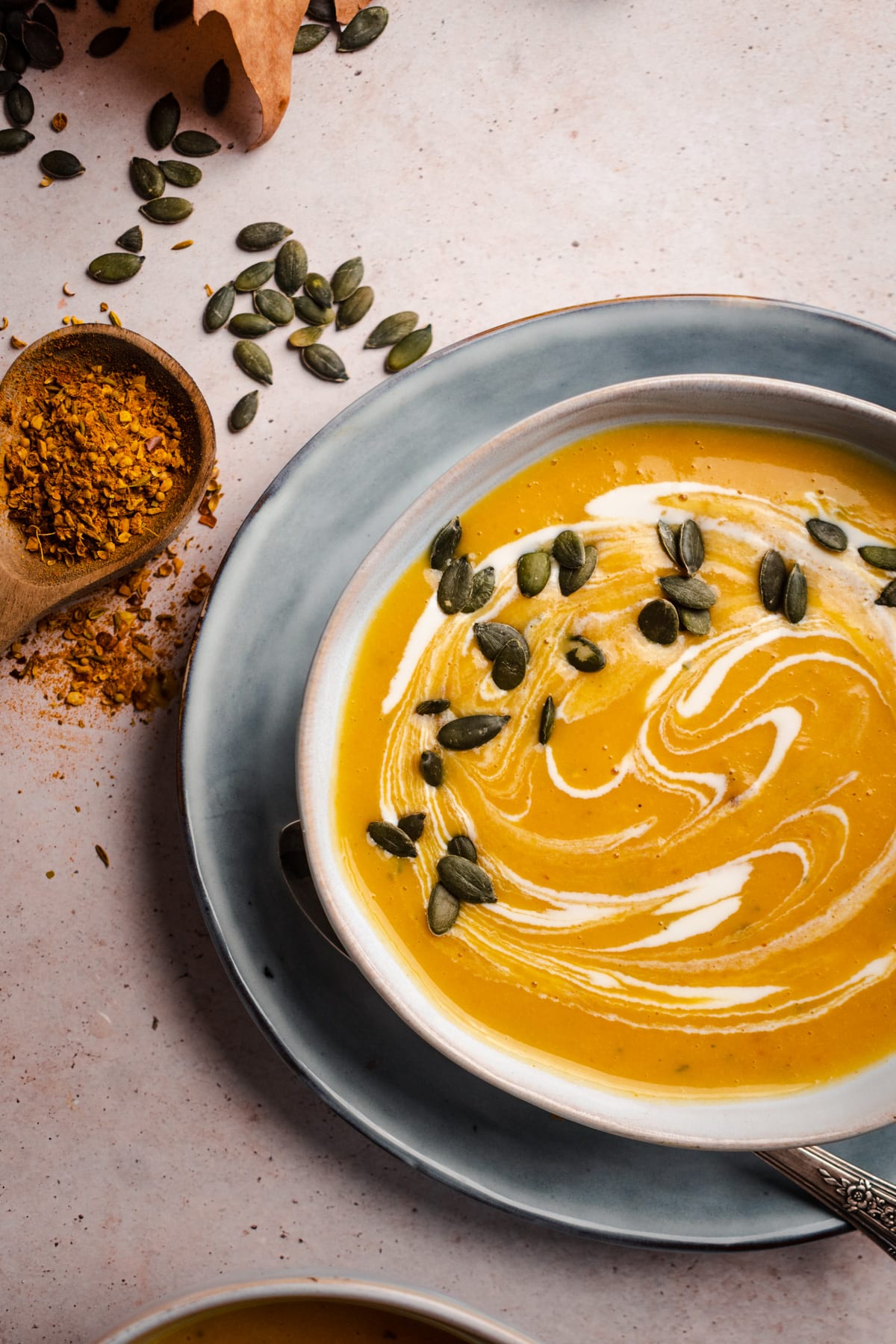 Perfectly smooth butternut squash soup with coconut milk. It's loaded with flavor and won't disappoint.