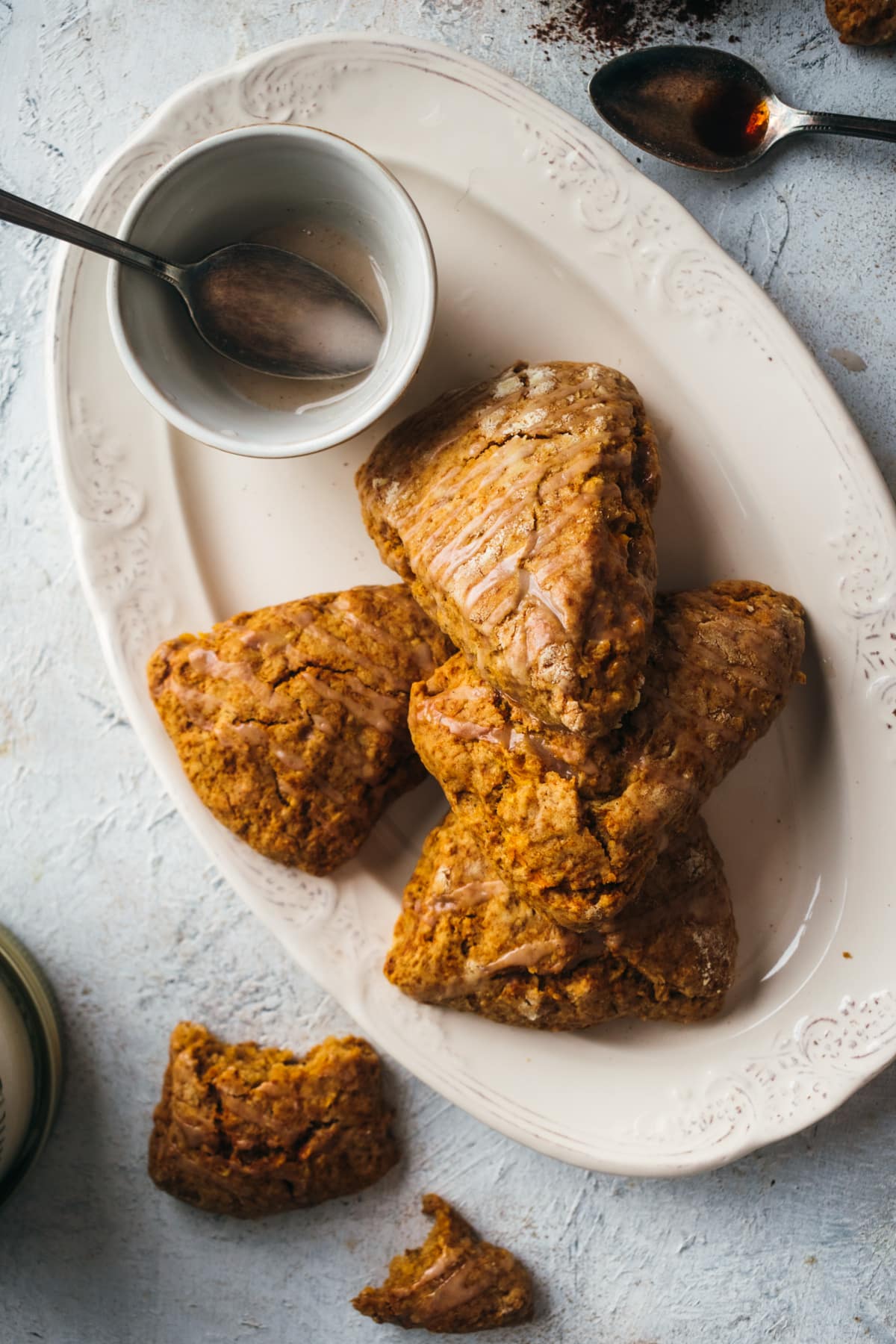 Have you ever had a pumpkin scone from Starbucks? These are a copycat recipe but honestly, they might just taste better!