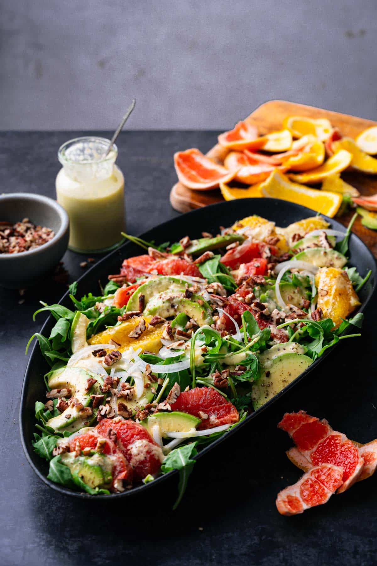 Try my arugula salad with citrus for something light, refreshing, and utterly delicious. Whether you make my homemade sweet onion citrus dressing to go along with it or enjoy it with one of your own, you’ll be enamored with the textures and flavors in every bite!