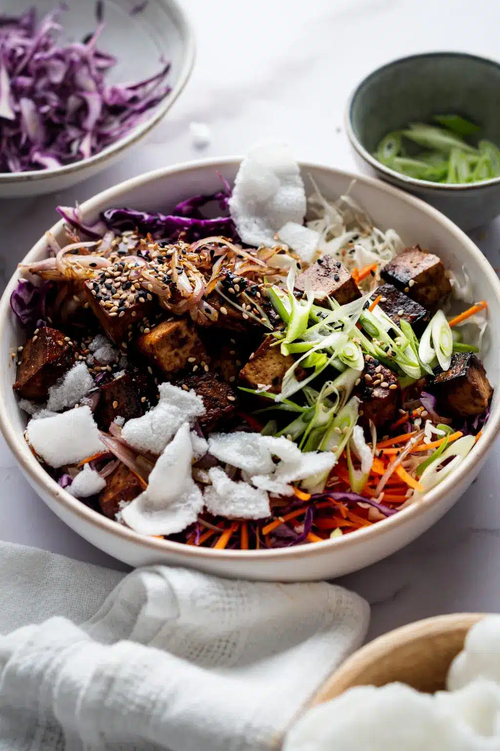 Tofu pairs well with rice, noodles, soups, and more. It is amazing with vegetables, soy sauce, ginger, oyster sauce, gochujang, and other Asian flavors but surprisingly great with flavors that aren’t Asian too. For inspiration, check out the recipes below!