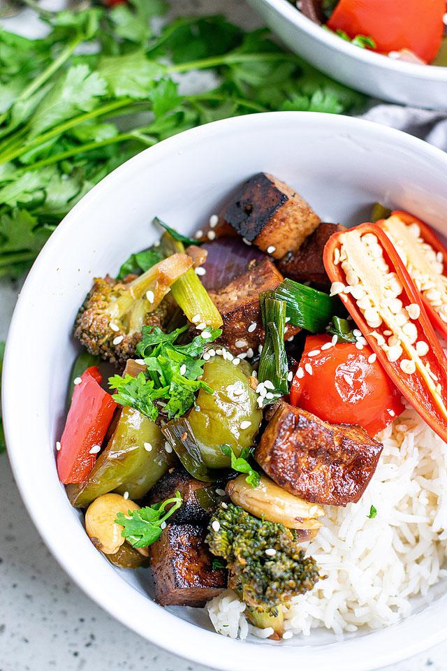 These delicious recipes for tofu curries are divine. Enjoy them over a bed of rice for an extra-filling meal. White rice, brown rice, or cauliflower rice can all be tasty, depending on what you’re in the mood for.