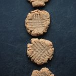 Scoop dough onto cookie sheet. (This vegan cookie dough will pretty much stay in whatever form it’s plopped onto the cookie sheet, so make sure to create round cookie dough balls and flatten them a bit if you want a more uniform “cookie” look.)